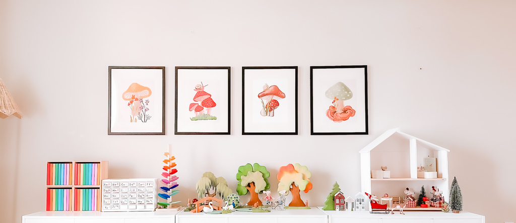 This little play kitchen is absolutely charming and a perfect spot for imaginative play.